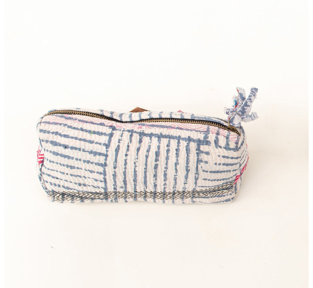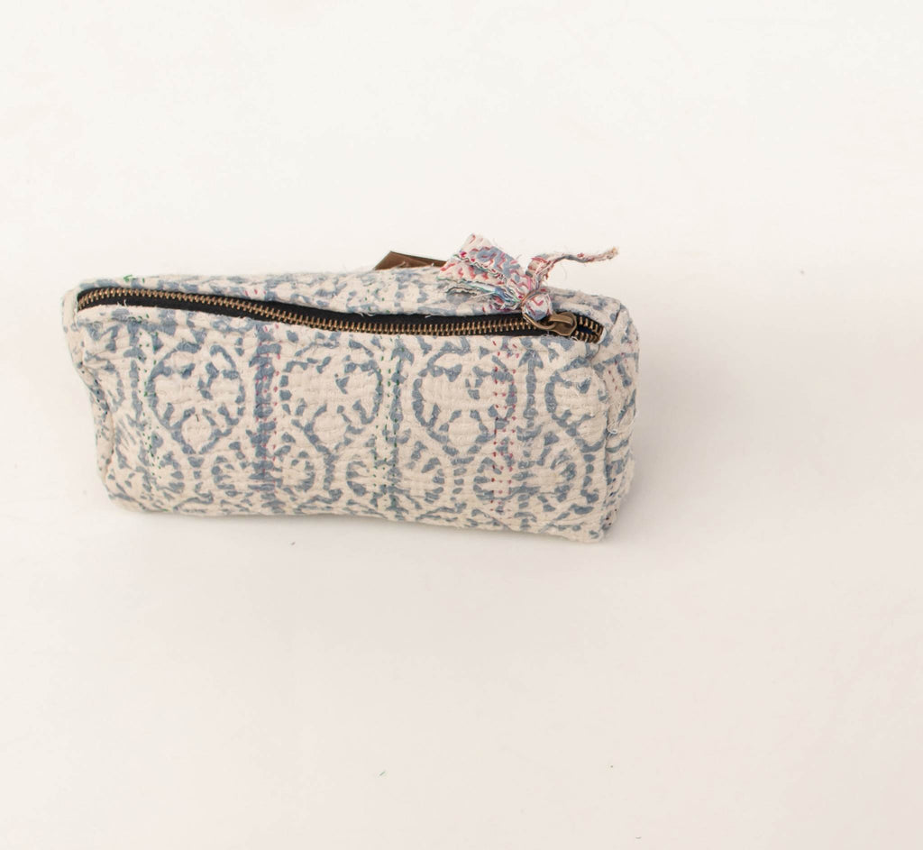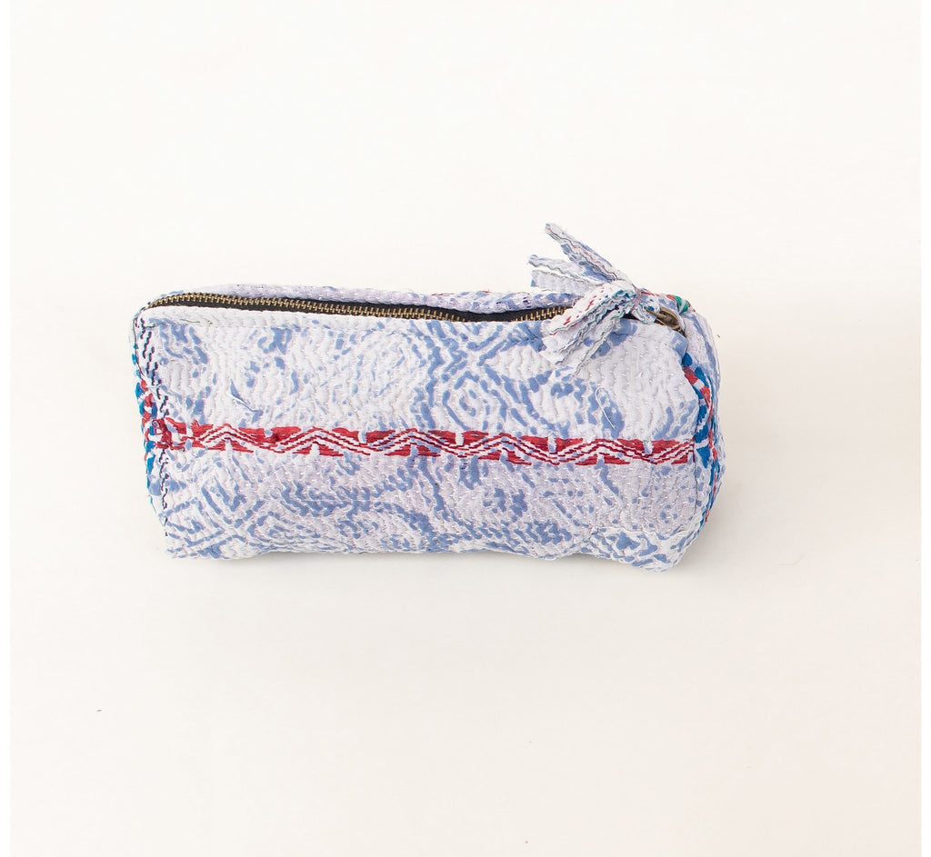 Do you love a light, calm look? Vintage Pearl is our white/cream sari pouch with delicate block print. It gathers your small essentials – makeup, jewelry, keys, and earbuds – and adds a touch of elegant boho charm to your bag. Each pouch is unique, so the one you choose is completely yours.