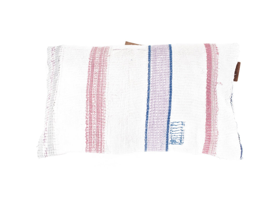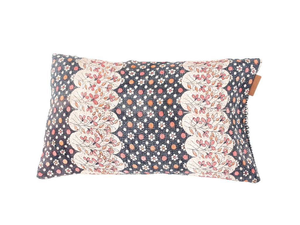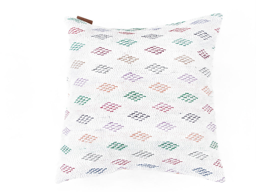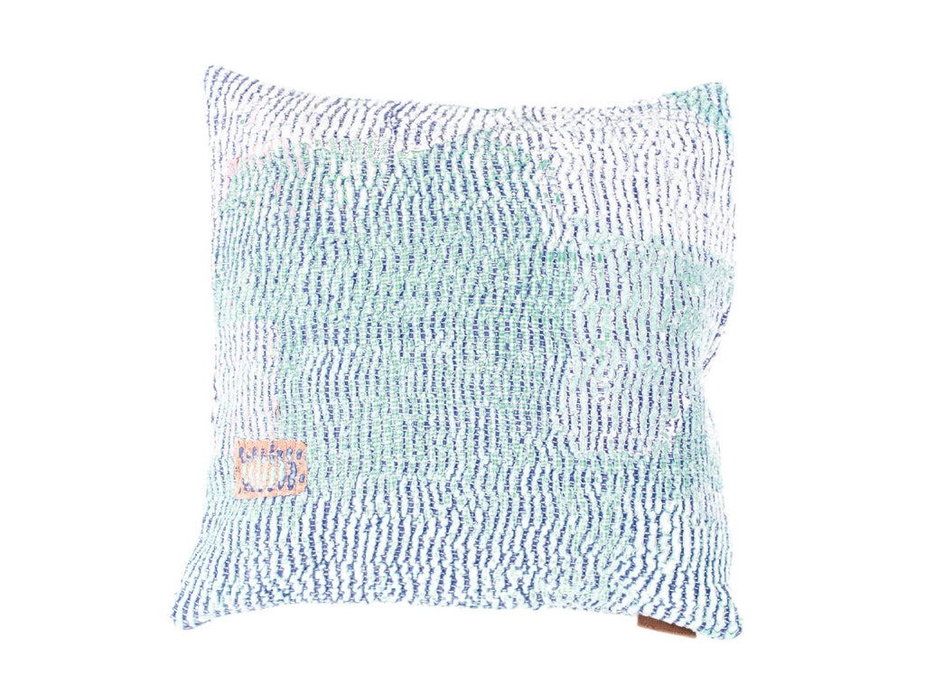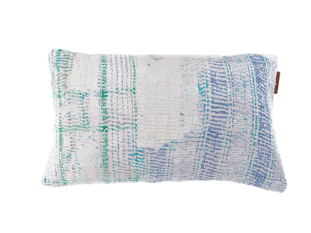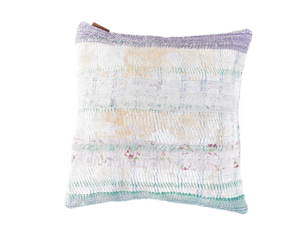 Fine Q are Sari cushions produced from a type of sari that has a different expression than our normal Sari Kantha cushions. They are made of thick recycled cotton sari laid together with several layers in between and with a worn look, where the saris inside help to give the whole pillow a very raw vintage look. They are toned down in colors and patterns and are sewn with smaller and tighter Kantha stitches, which give them an authentic look..