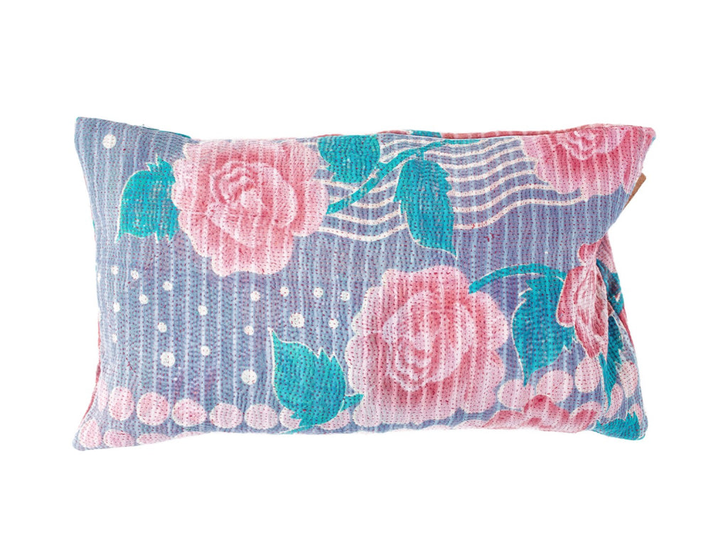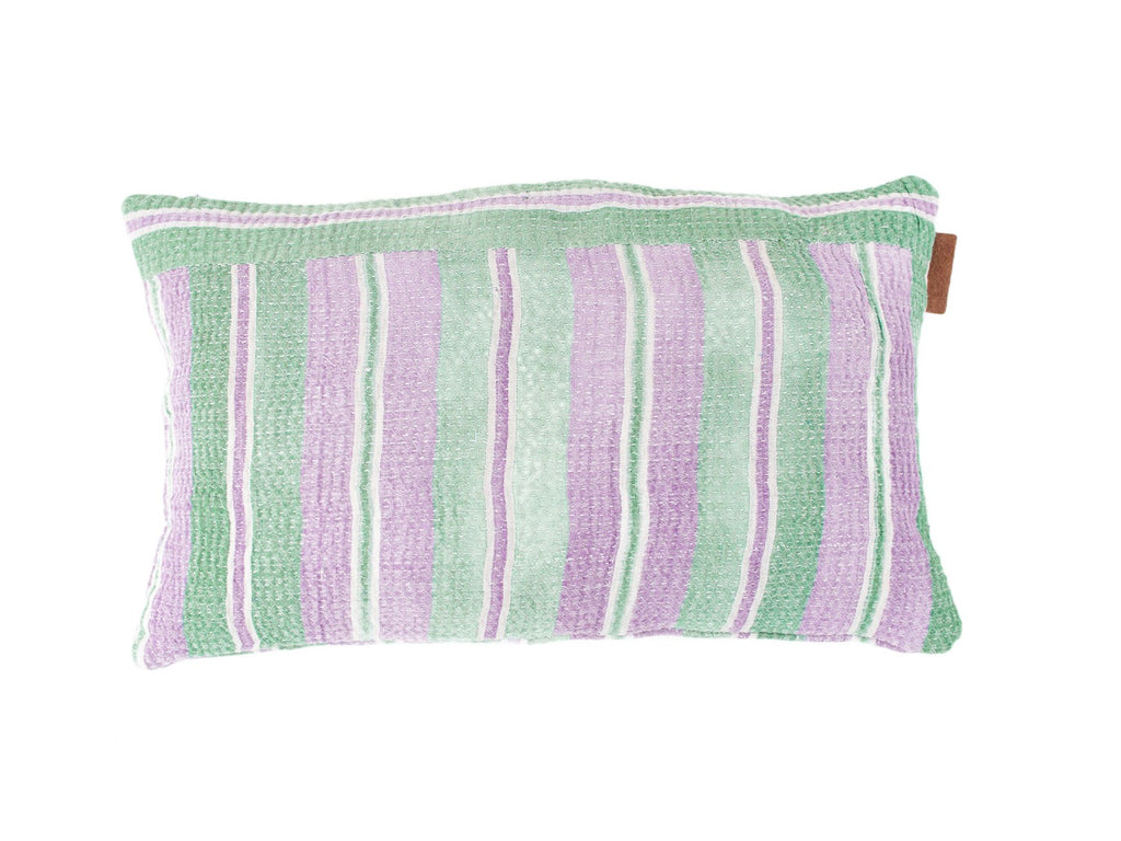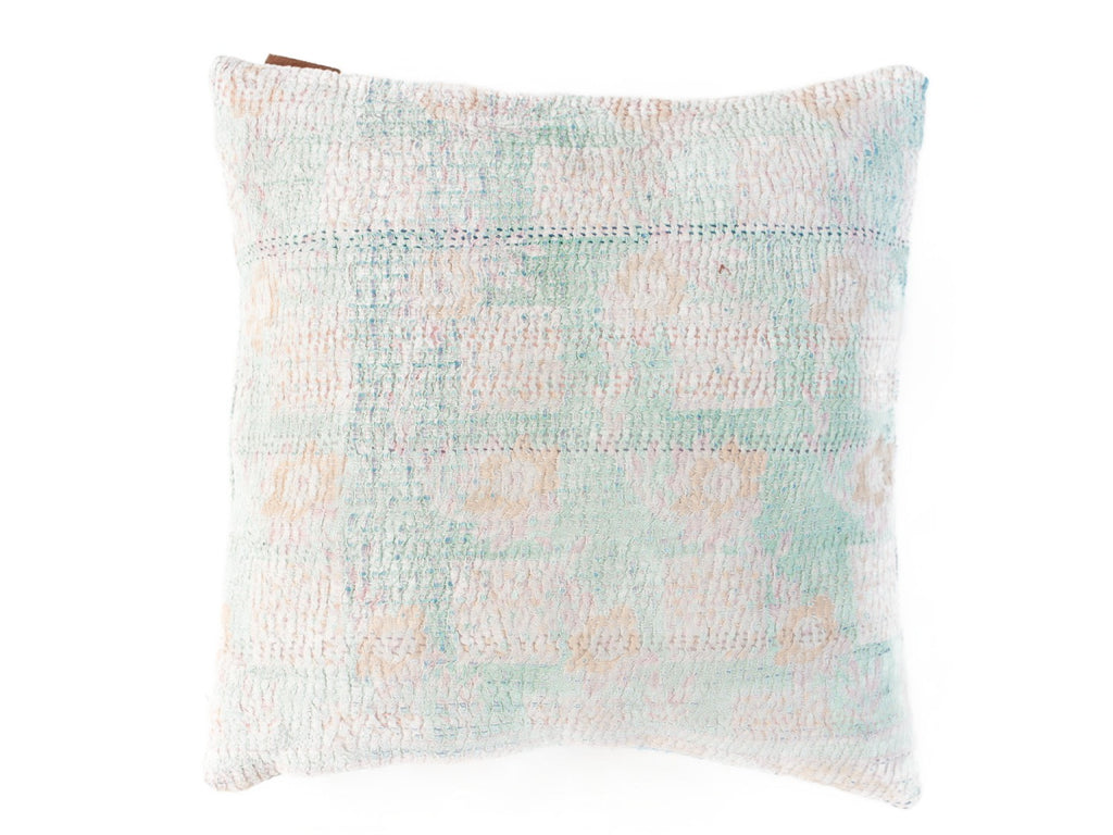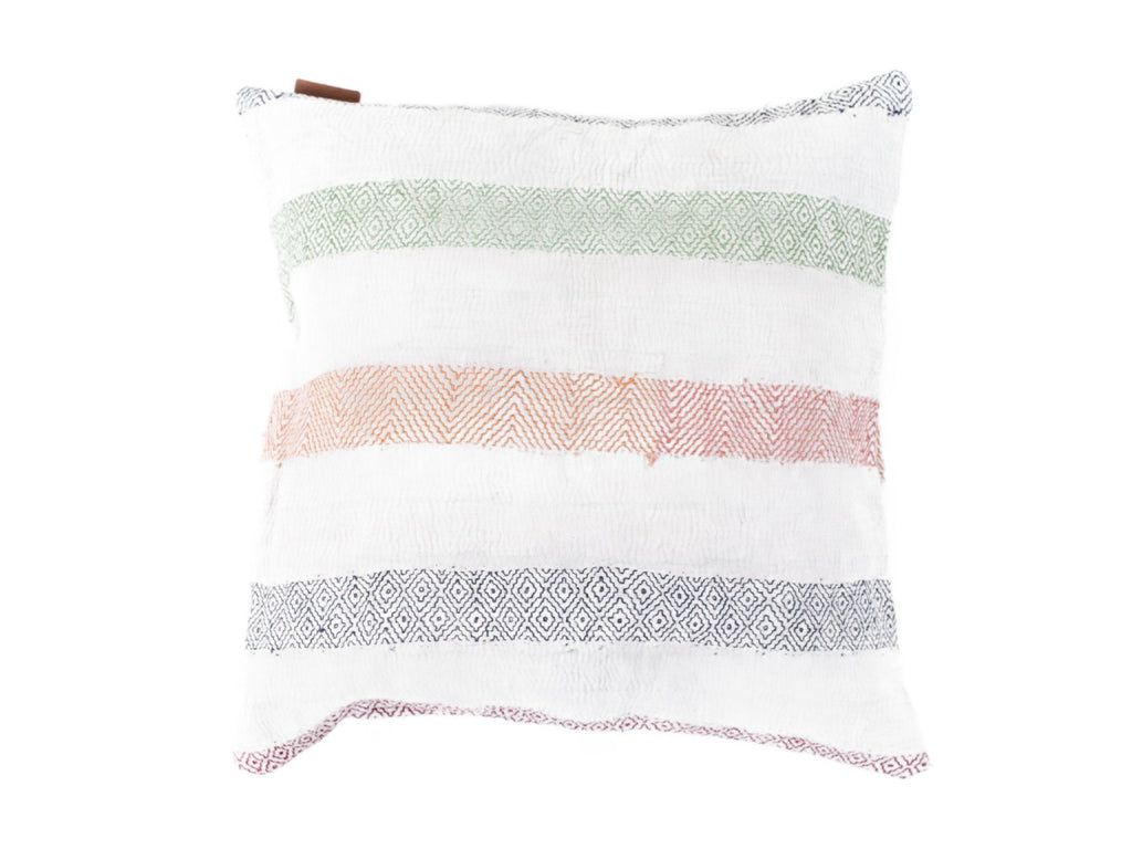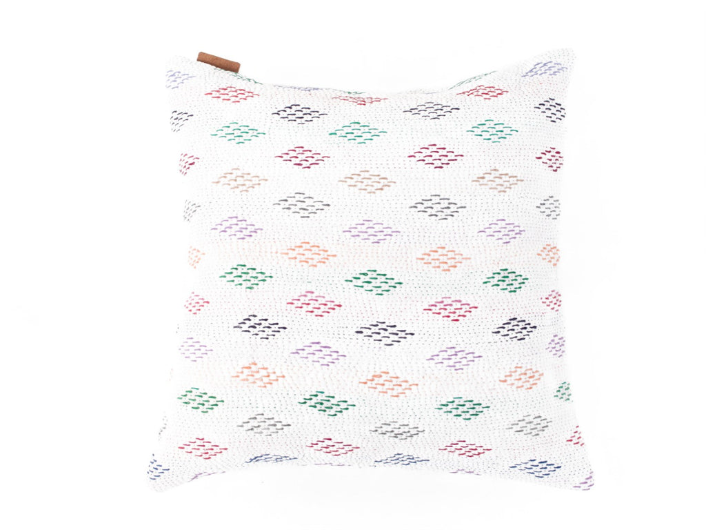 Fine Q are Sari cushions produced from a type of sari that has a different expression than our normal Sari Kantha cushions. They are made of thick recycled cotton sari laid together with several layers in between and with a worn look, where the saris inside help to give the whole pillow a very raw vintage look. They are toned down in colors and patterns and are sewn with smaller and tighter Kantha stitches, which give them an authentic look..