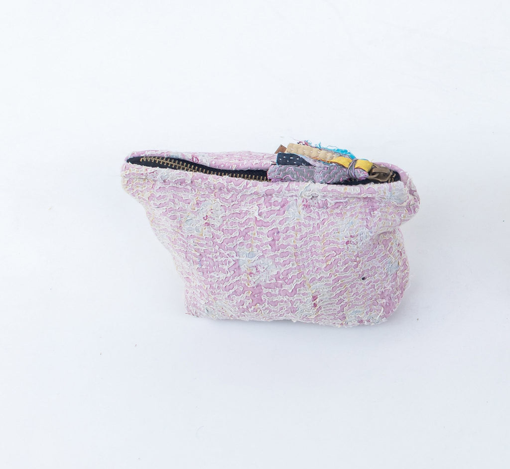 Discover our Fine Q Mini Pouches – small, unique works of art made from handpicked saris from India. Each pouch is completely one-of-a-kind, meaning there is only one of each. These pouches are perfect for storing your small items like makeup, jewelry, or keys, and they add a touch of bohemian luxury to your everyday life.
