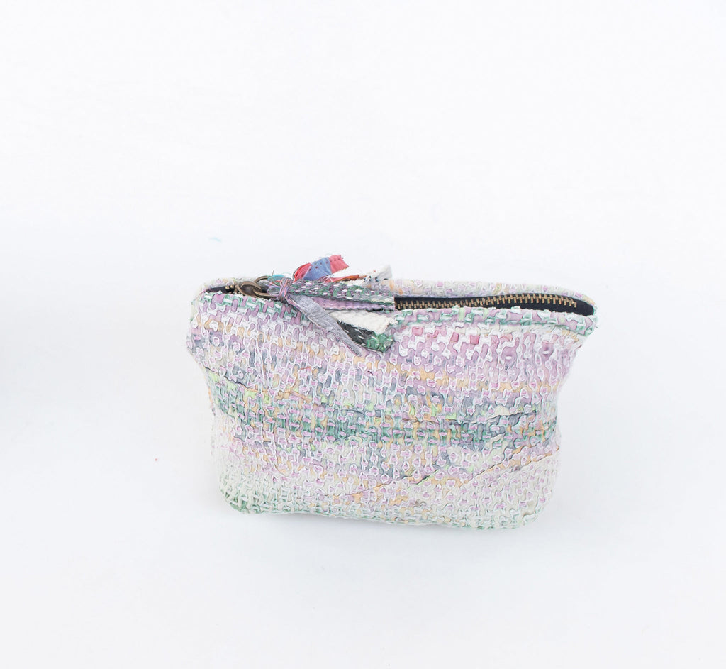 Discover our Fine Q Mini Pouches – small, unique works of art made from handpicked saris from India. Each pouch is completely one-of-a-kind, meaning there is only one of each. These pouches are perfect for storing your small items like makeup, jewelry, or keys, and they add a touch of bohemian luxury to your everyday life.